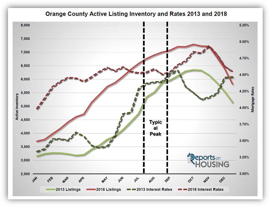 Values have climbed more than 20% year-over-year and the pace of Orange County housing has not slowed much at all this year. The Expected Market Time (the amount of time between hammering in the FOR-SALE sign and opening escrow) is currently at 23 days, an unbelievably Hot Seller’s Market. A Hot Seller’s Market is defined as a market time below 60-days, the lower the level, the hotter the market. At 23-days, the market remains insane with plenty of showings, multiple offers, and sales prices above their list prices. At this point, what will decelerate the market enough to allow housing to transition away from a Hot Seller’s Market to a Slight Seller’s Market, Balanced Market, or even a Buyer’s Market? Rising mortgage rates. That is precisely what occurred in 2013 and 2018.